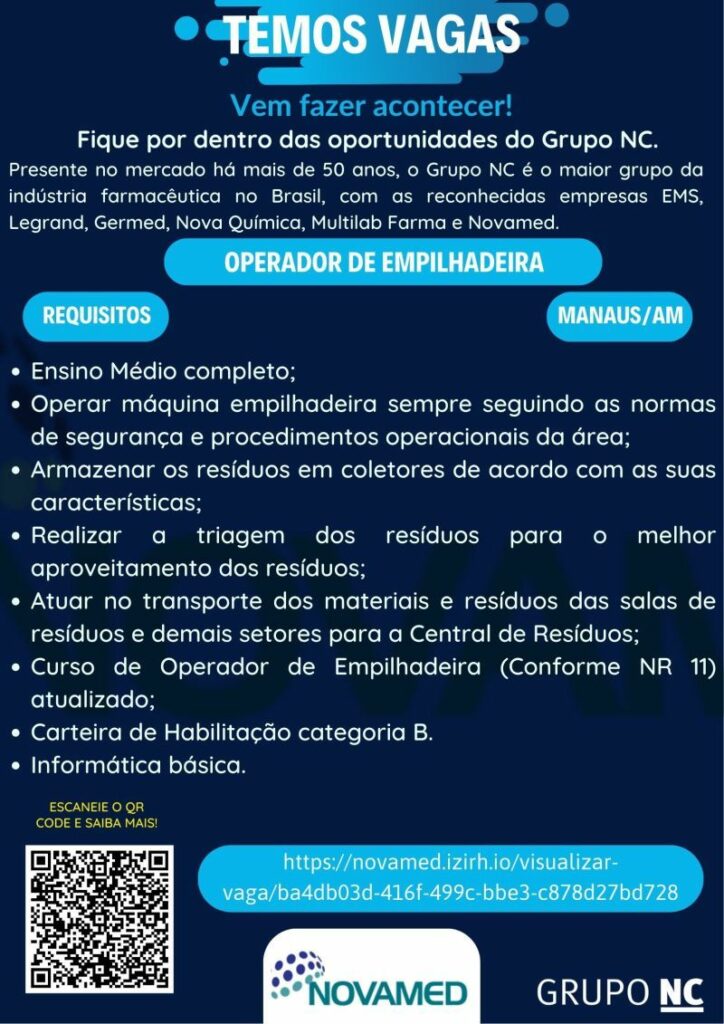 Indústria seleciona Jovem Aprendiz, Operador de empilhadeira, Conferente, Técnico de segurança do trabalho; Envie seu currículo!