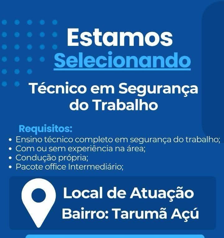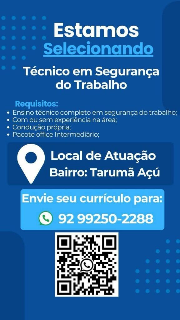 Com ou sem experiência! Empresa seleciona Técnico em segurança do trabalho; Envie seu currículo!