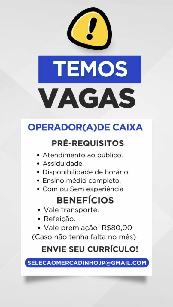 Mercadinho está selecionando Operador (a) de caixa; Envie seu currículo!