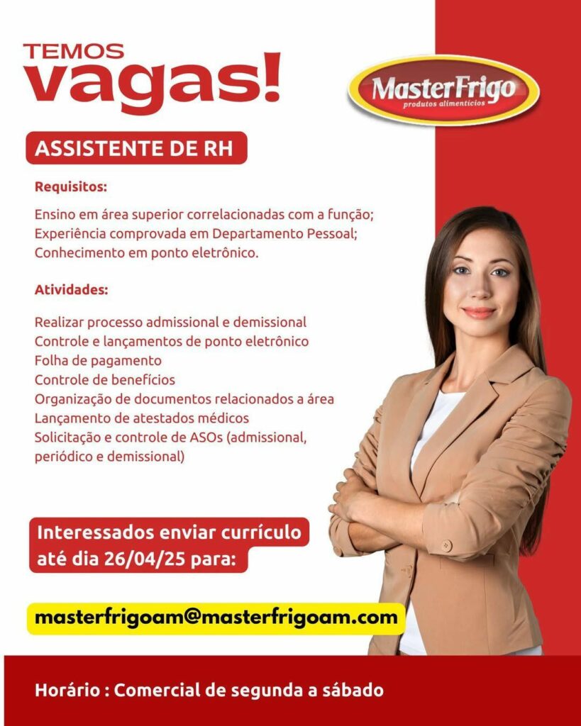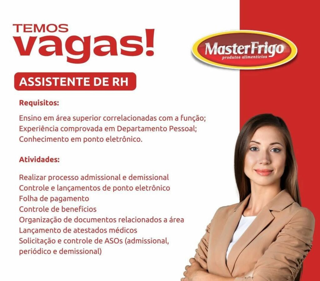 Master frigo seleciona Assistente de rh; Envie seu currículo!