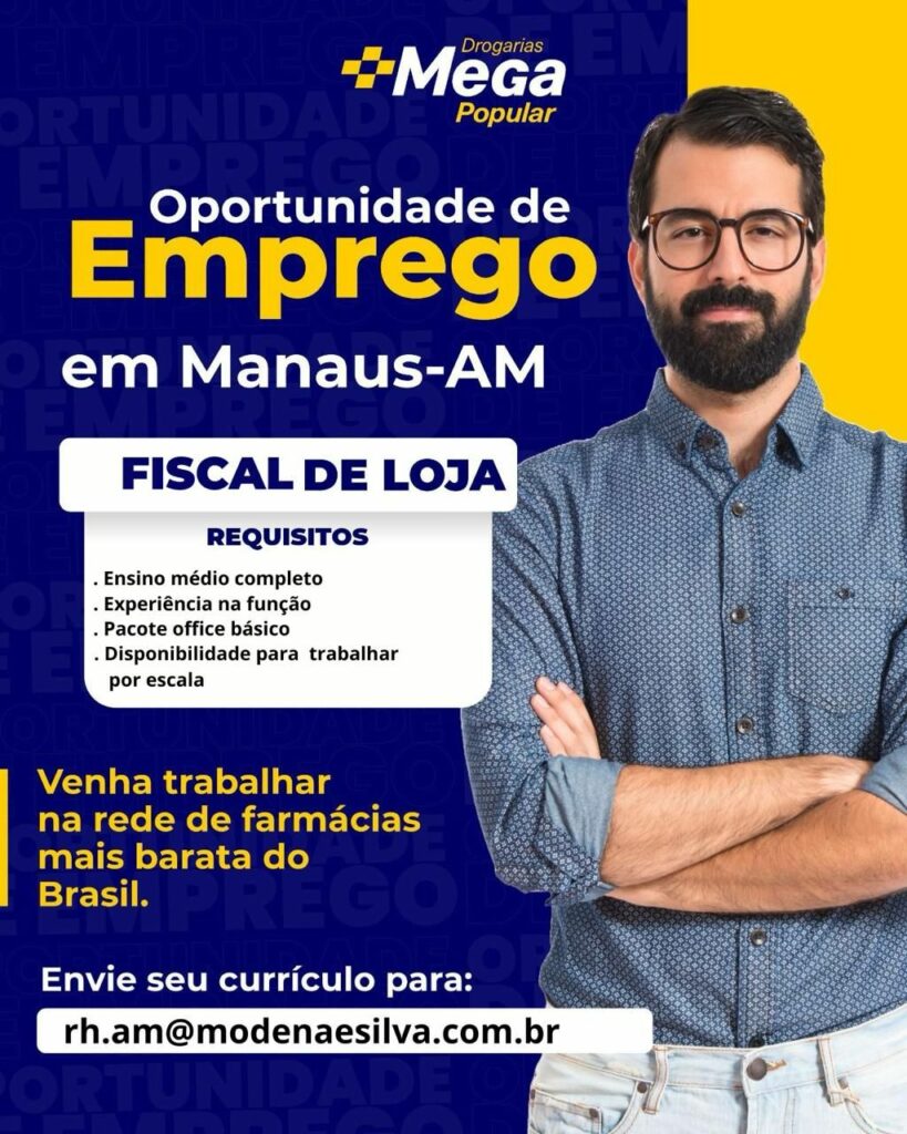 Drogarias Mega popular seleciona Fiscal de loja; Envie seu currículo!