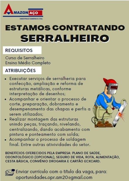 Amazon Aço recrutando para três vagas de emprego em Manaus