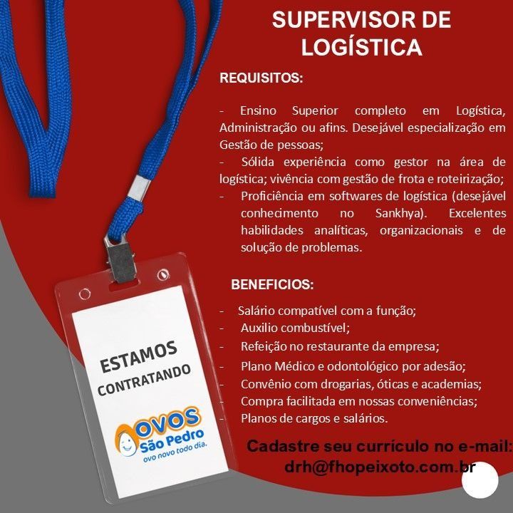 O processo seletivo para esta(s) vaga(s) não cobra absolutamente nada pela sua candidatura. Portanto, jamais aceite qualquer tipo de cobrança para cadastrar seu currículo.