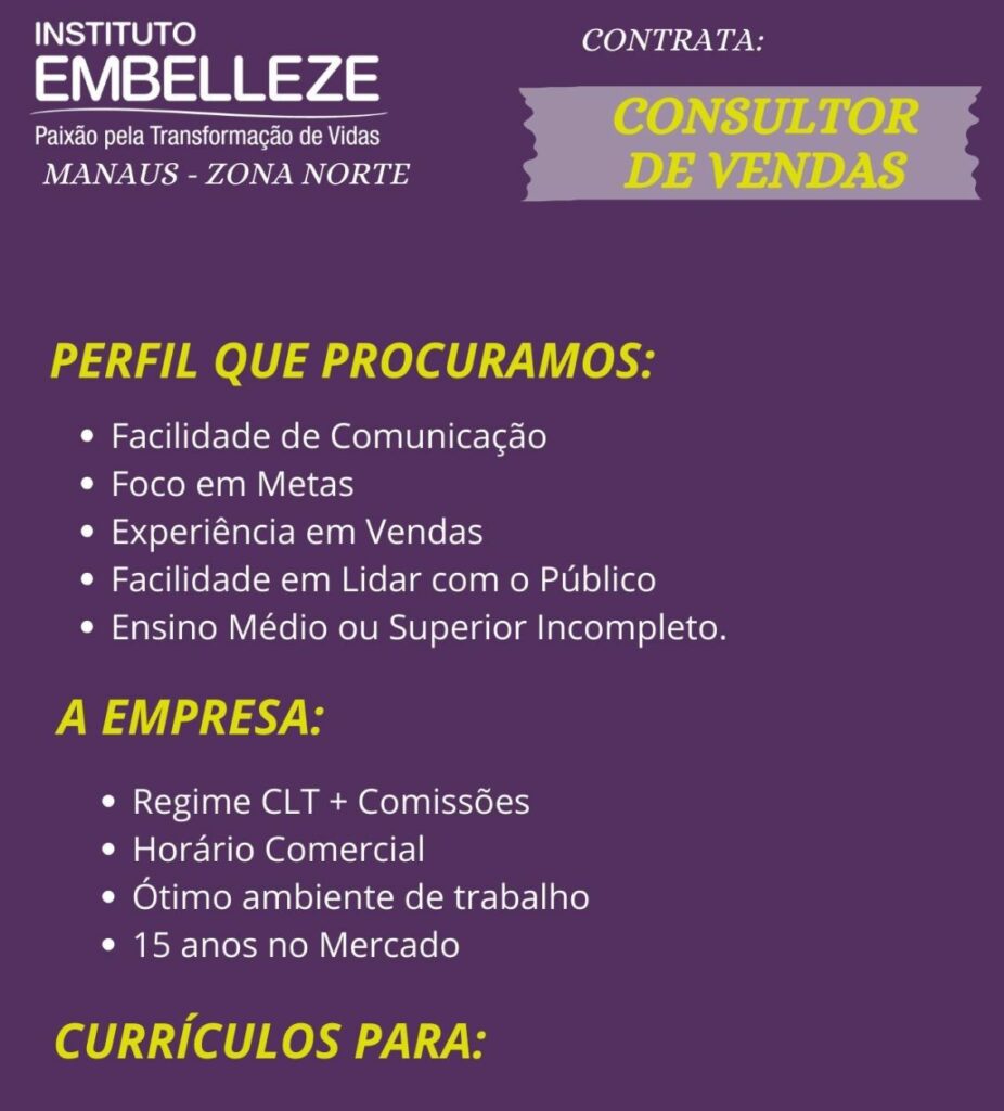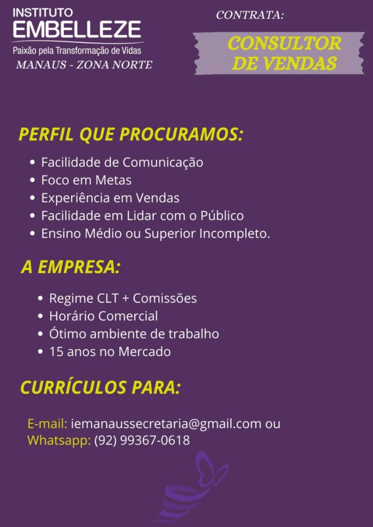 Empresa seleciona para vaga de Consultor de vendas; Envie seu currículo!