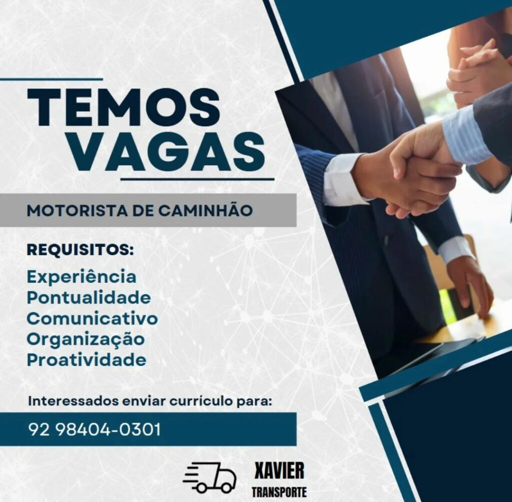 Xavier transporte seleciona Motorista; Envie seu currículo!