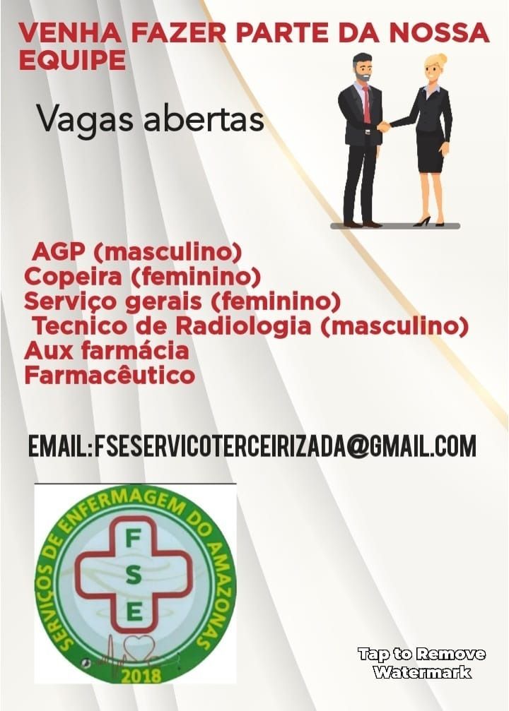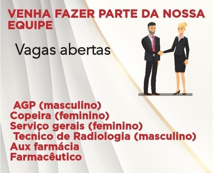 Seleção para seguintes vagas AGP, Copeira, Serviços Gerais, Técnico de radiologia, Auxiliar de farmácia, Farmacêutico; Envie seu currículo!