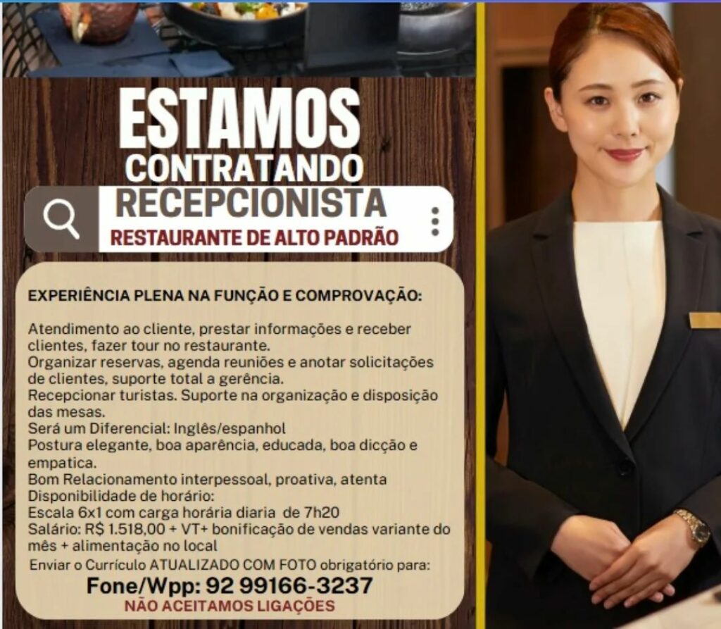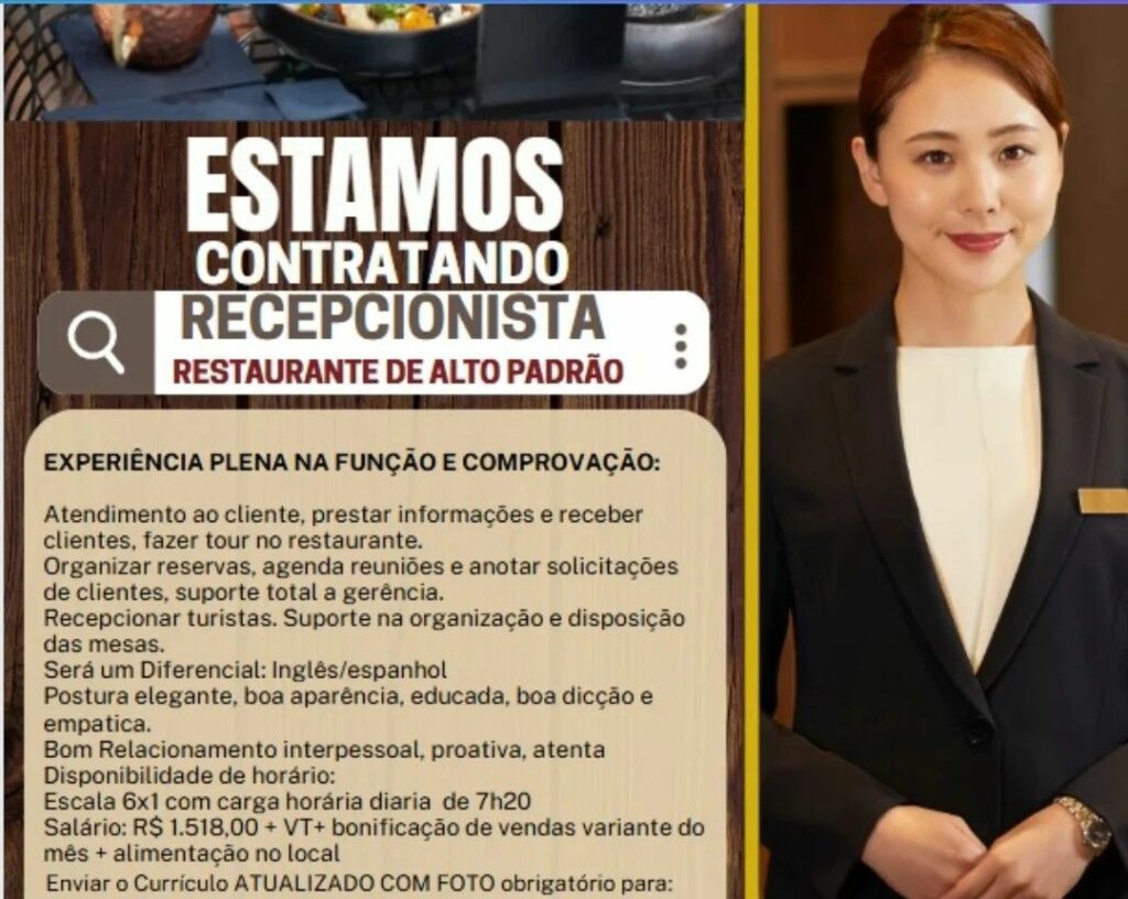 Empresa está selecionando Recepcionista; Envie seu currículo!