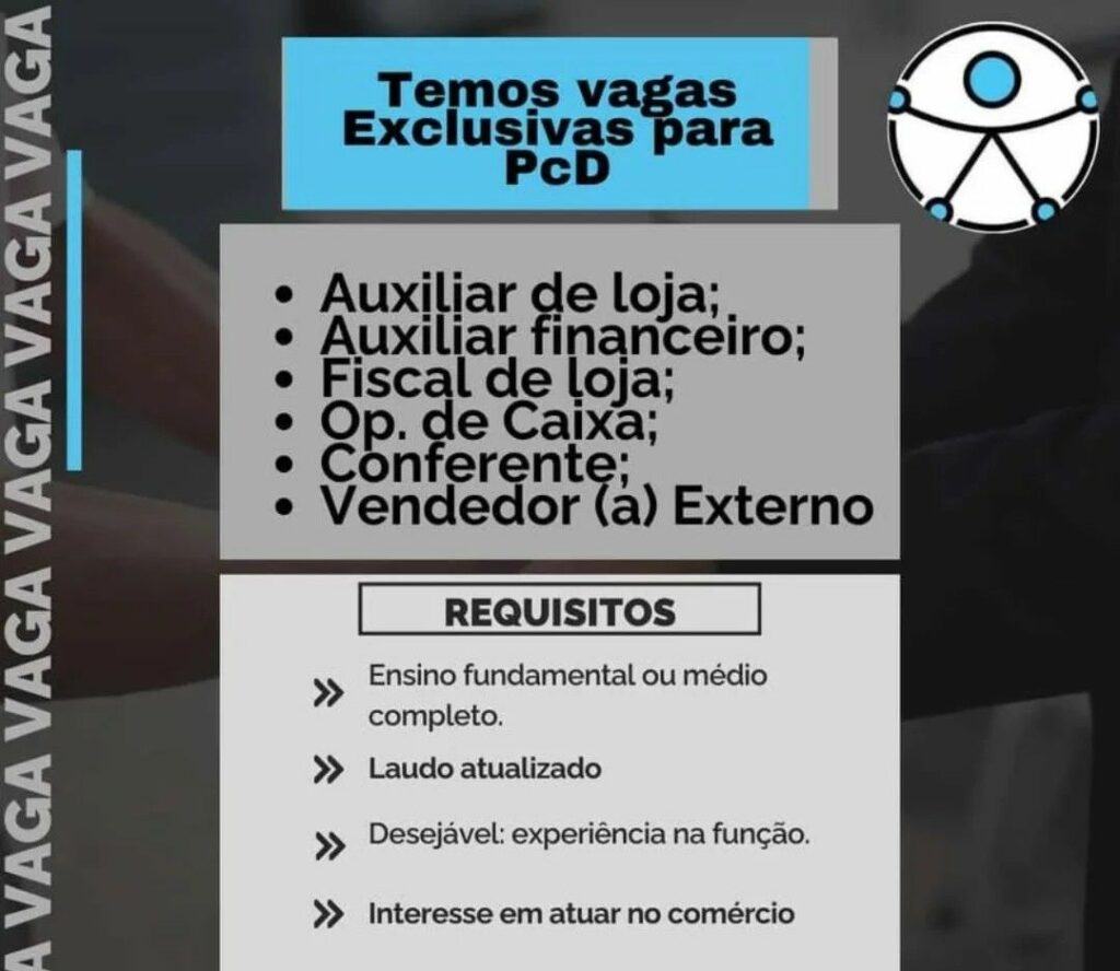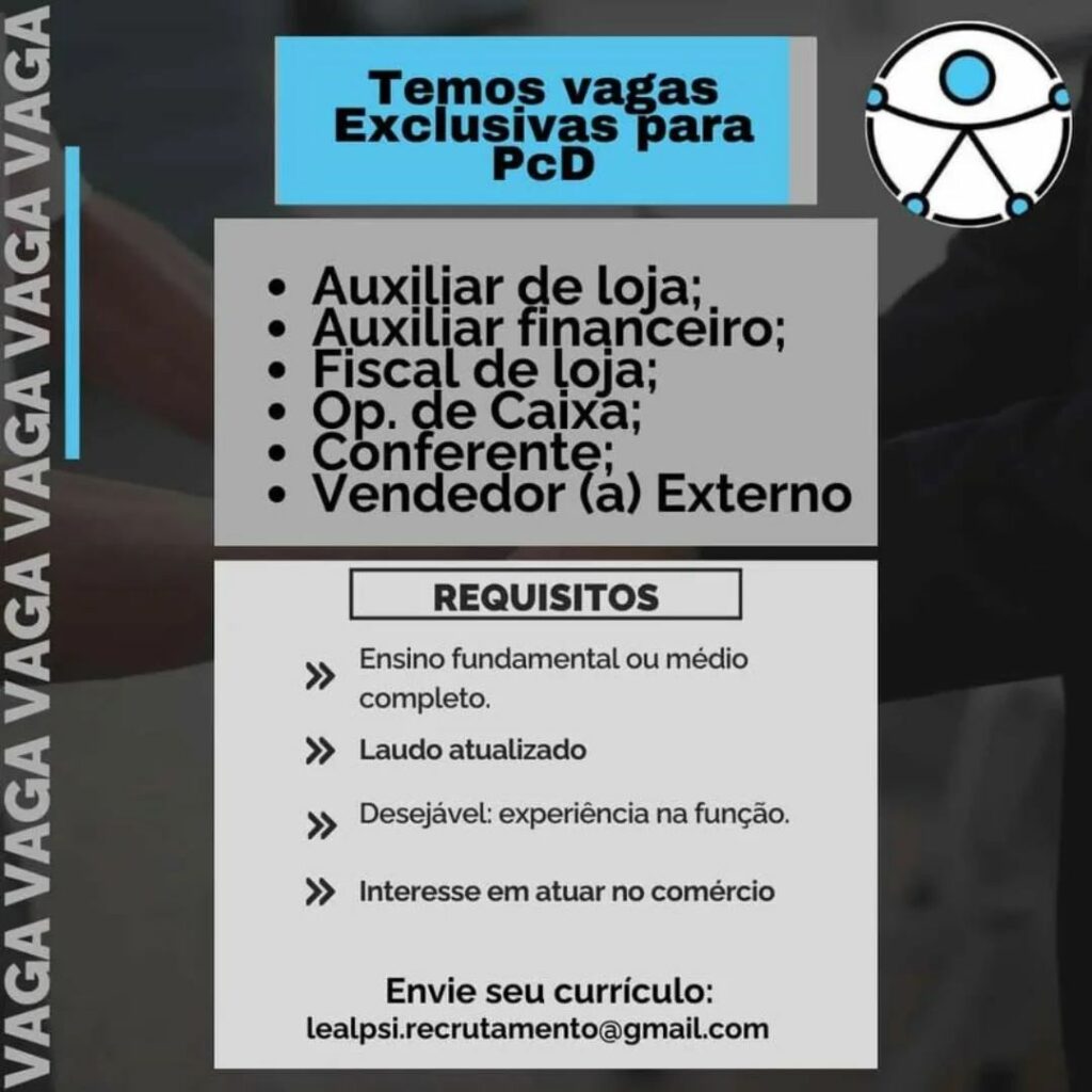Empresa está selecionando Auxiliar de loja, Auxiliar financeiro, Fiscal de loja, Op. de caixa, Conferente, Vendedor (a) externo; Envie seu currículo!
