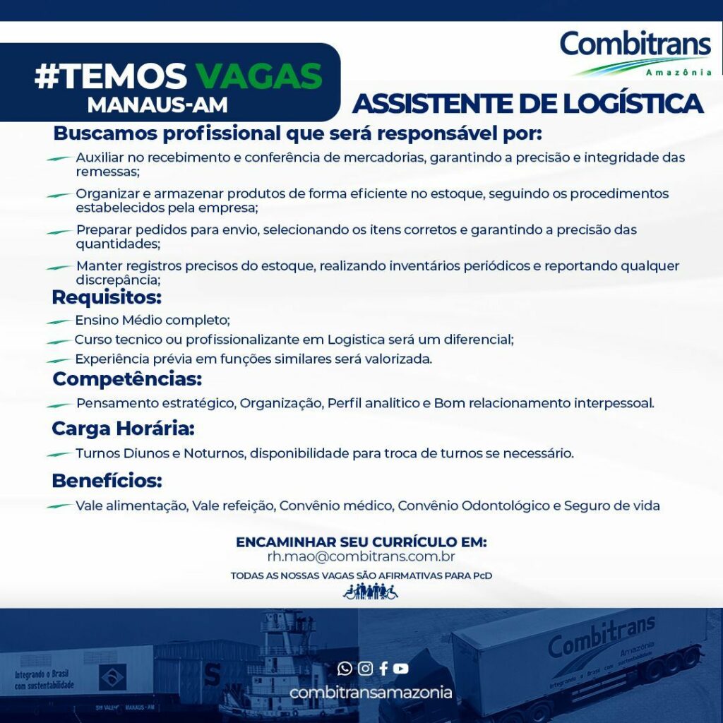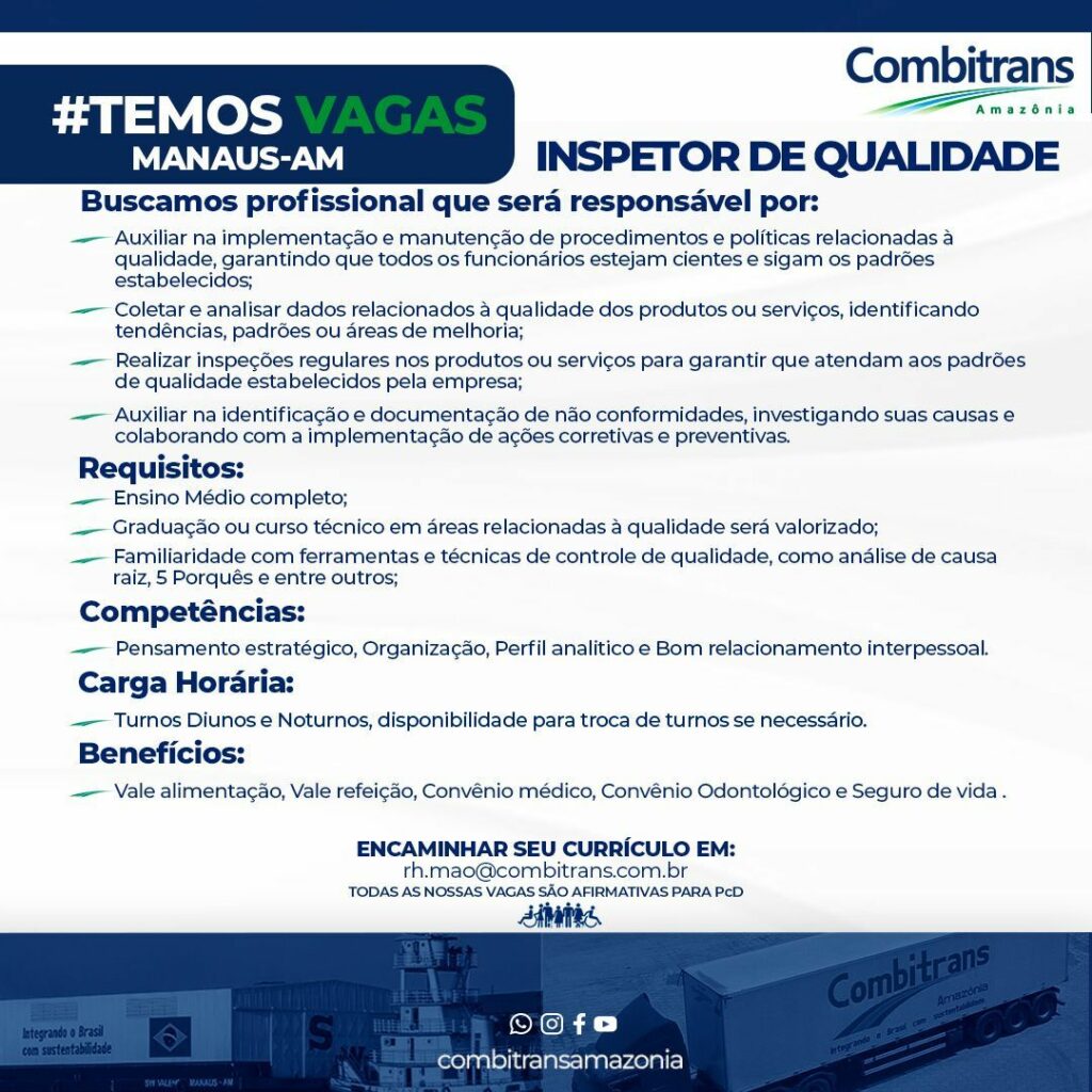 Combitrans está selecionando Assistente de logística, Inspetor de Qualidade; Envie seu currículo!
