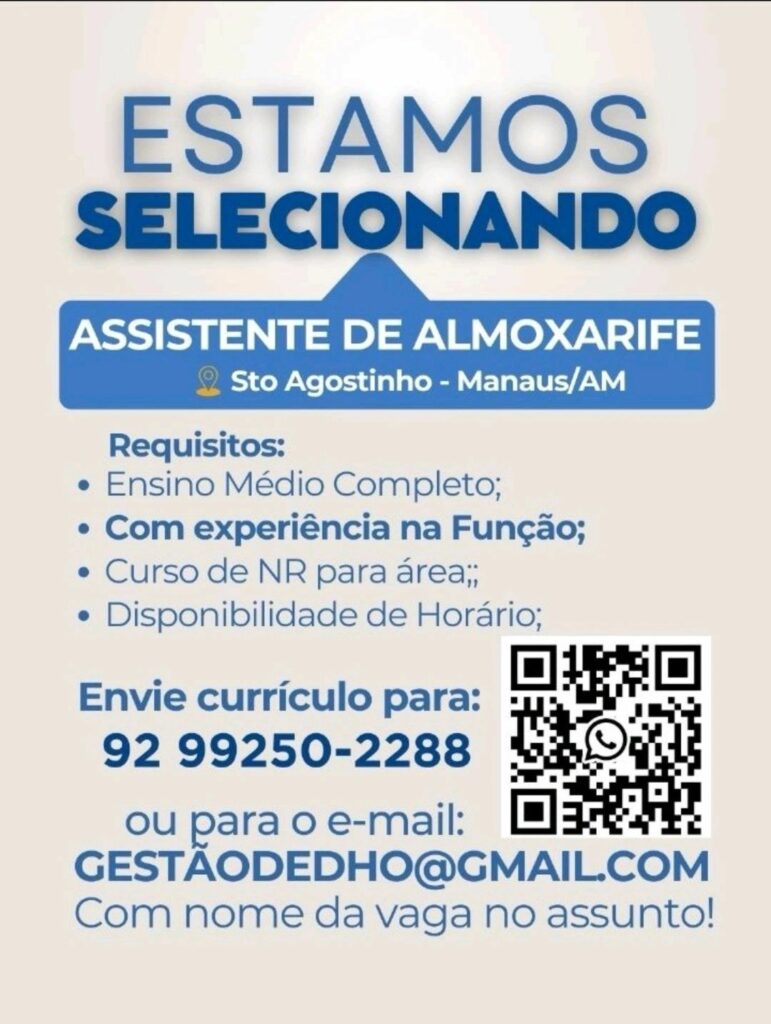 Empresa está selecionando Assistente de Almoxarife; Envie seu currículo!