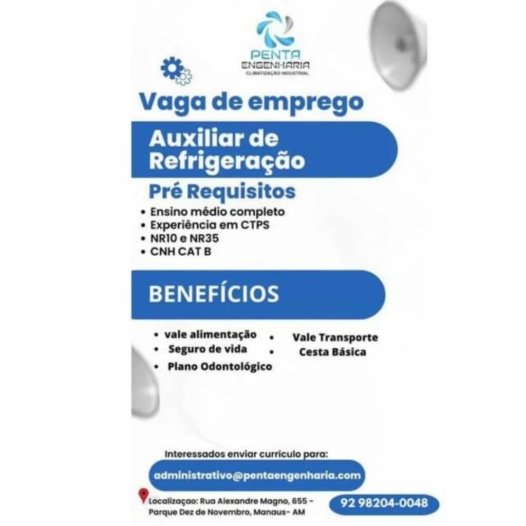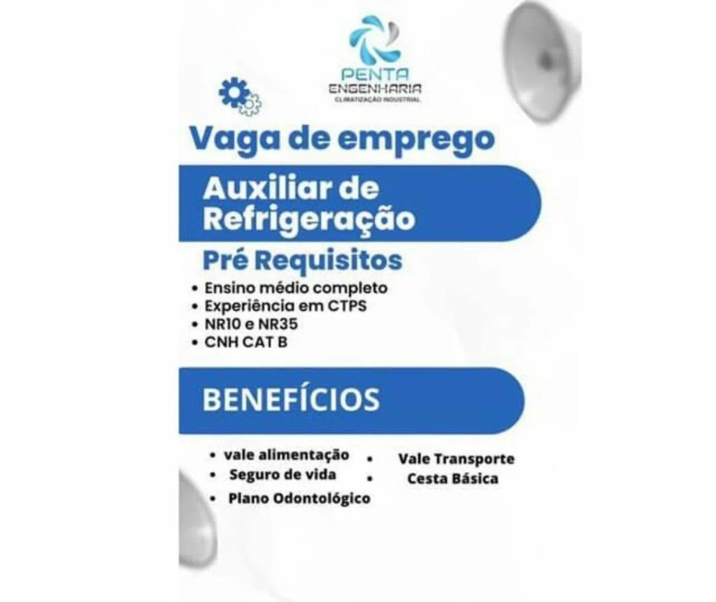 Empresa está selecionando Auxiliar de Refrigeração; Envie seu currículo!