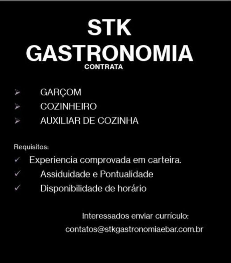 Empresa está selecionando Garçom, Cozinheiro, Auxiliar de cozinha; Envie seu currículo!