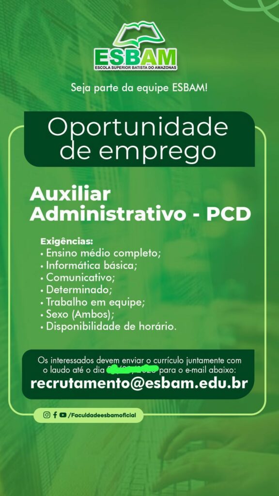Esbam centro educacional está selecionando Auxiliar administrativo; Envie seu currículo!