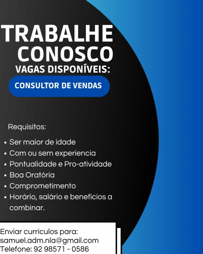 Empresa está selecionando Consultor de vendas; Envie seu currículo!