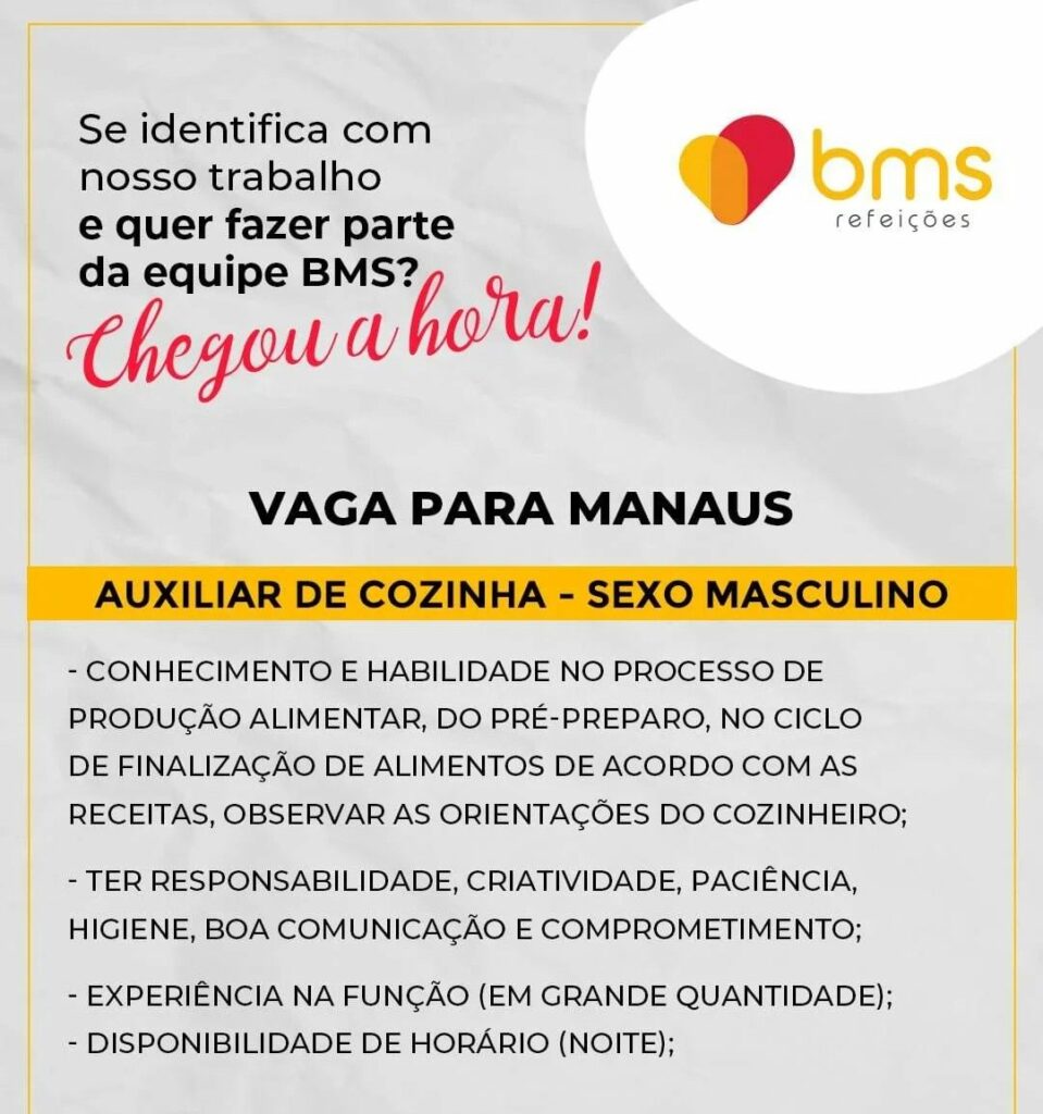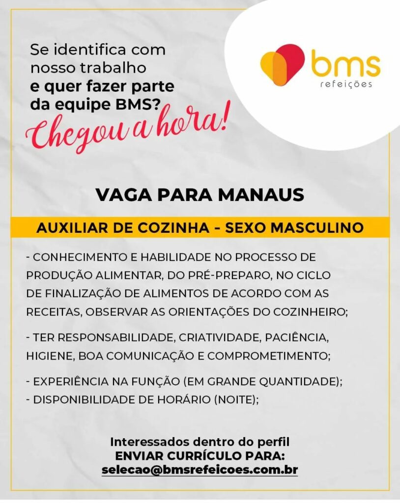 Empresa está selecionando Auxiliar de cozinha; Envie seu currículo!