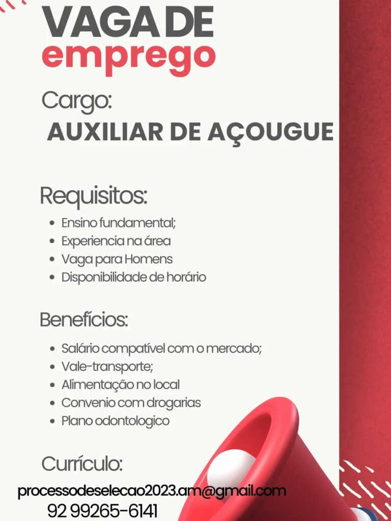 Empresa está selecionando Auxiliar de açougue; Envie seu currículo!