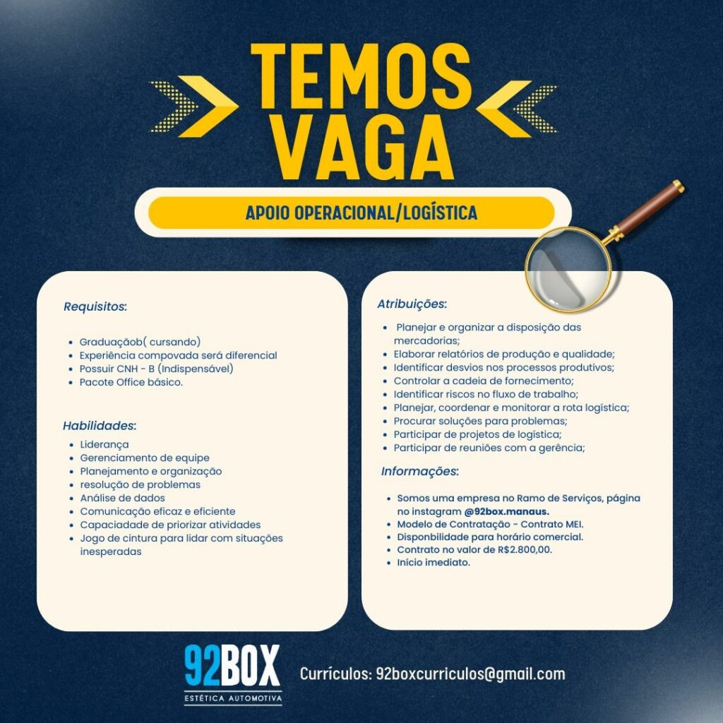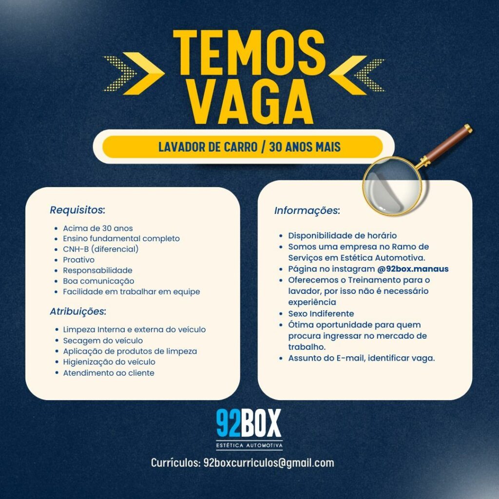 Empresa seleciona Apoio operacional logística, Lavador de carro; Envie seu currículo!