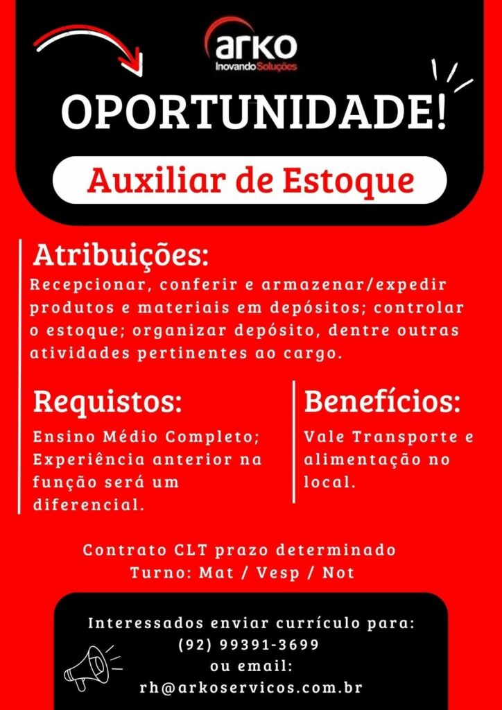 Empresa está selecionando Auxiliar de estoque; Envie seu currículo!