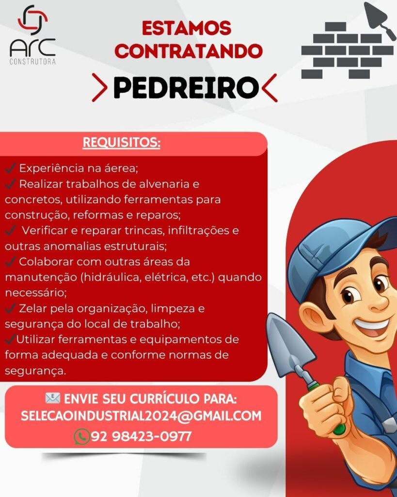Empresa está selecionando Pedreiro; Envie seu currículo!