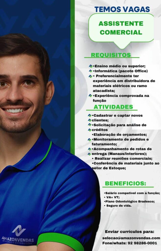 Empresa está selecionando Assistente comercial; Envie seu currículo!