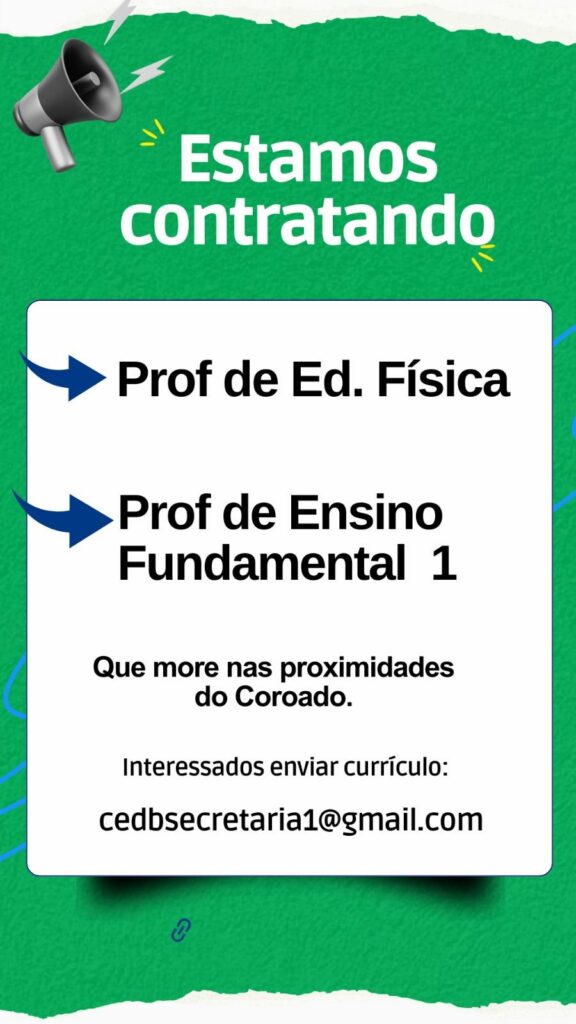 Seleção para vaga de Professor de educação física, Professor de ensino fundamental l; Envie seu currículo!
