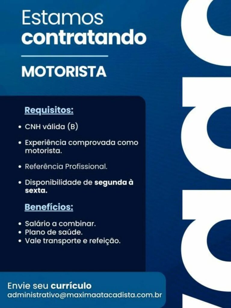 Seleção para vaga de Motorista Cat D; Envie seu currículo!