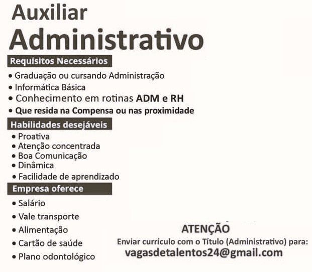 Empresa está selecionando Auxiliar administrativo; Envie seu currículo!