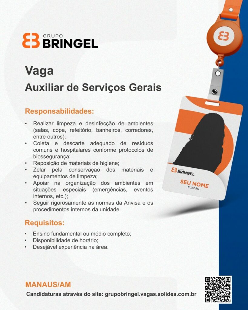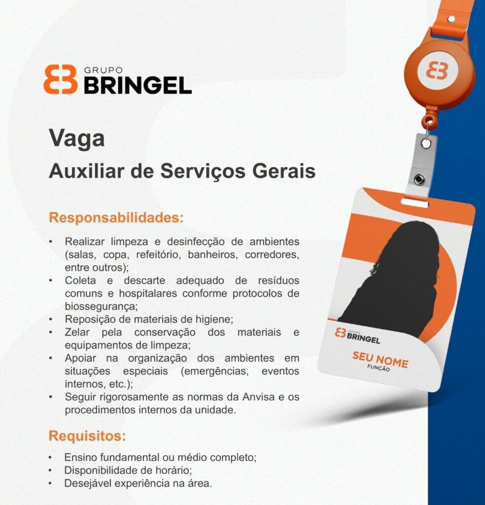 Grupo Bringel está selecionando Auxiliar de serviços gerais; Envie seu currículo!