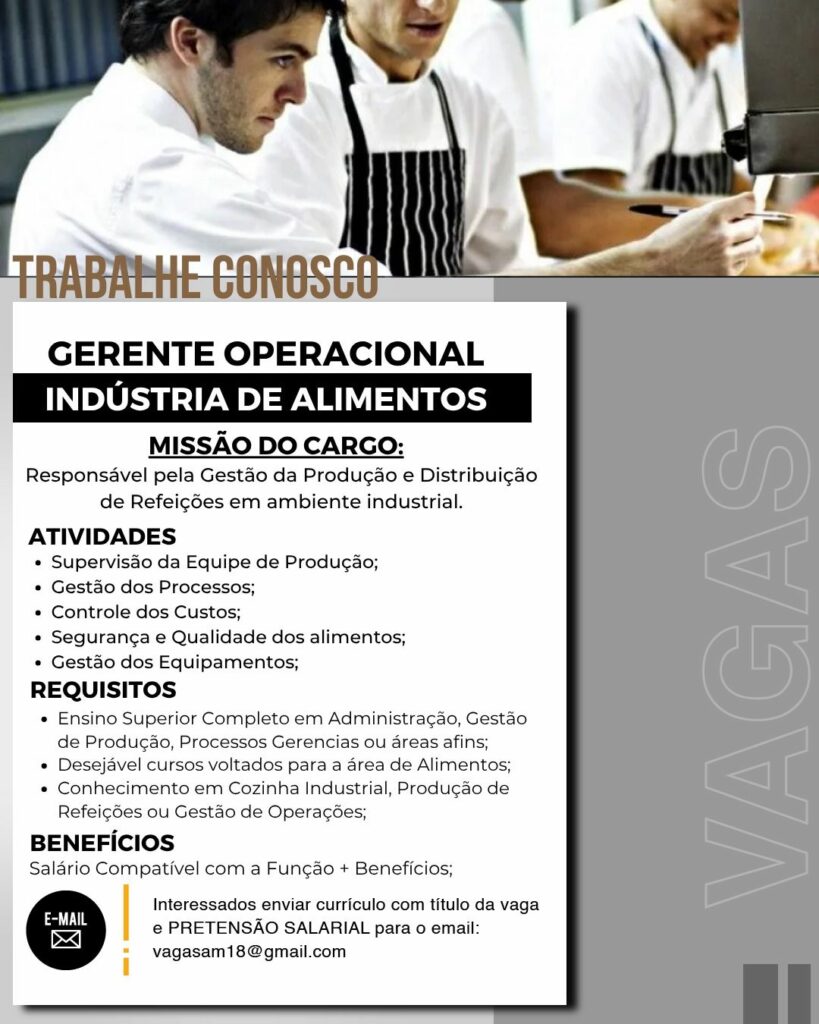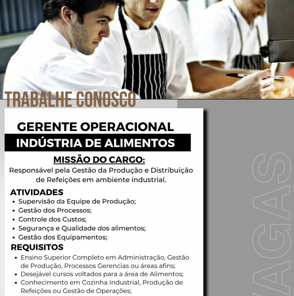 Indústria de alimentos seleciona Gerente operacional; Envie seu currículo!