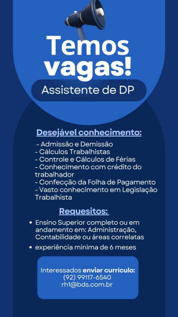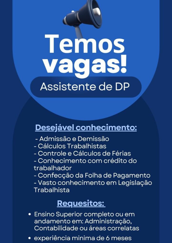 Empresa está selecionando Assistente DP; Envie seu currículo!
