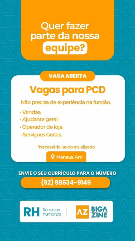 Big a zine está selecionando Vendas, Ajudante geral, Operador de loja, Serviços Gerais; Envie seu currículo!
