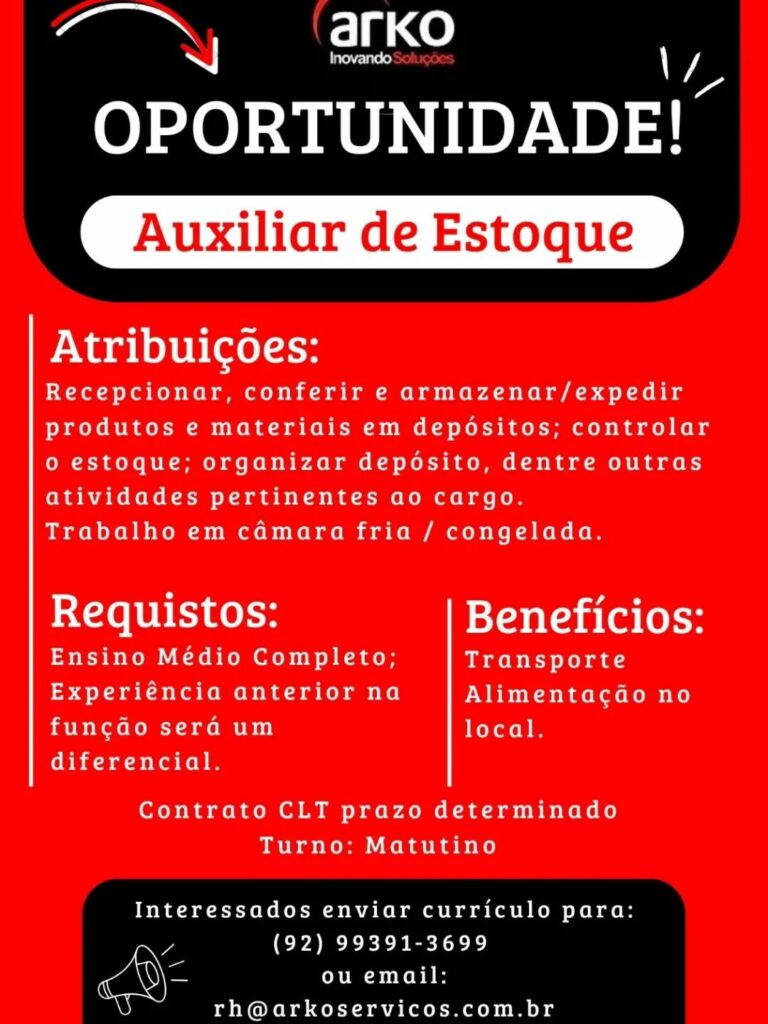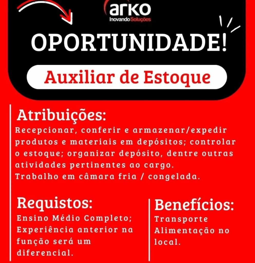 Empresa Arko está selecionando Auxiliar de estoque; Envie seu currículo!