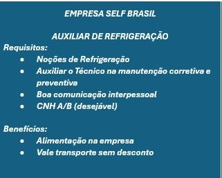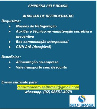 Empresa Self Brasil está selecionando Auxiliar de Refrigeração; Envie seu currículo!