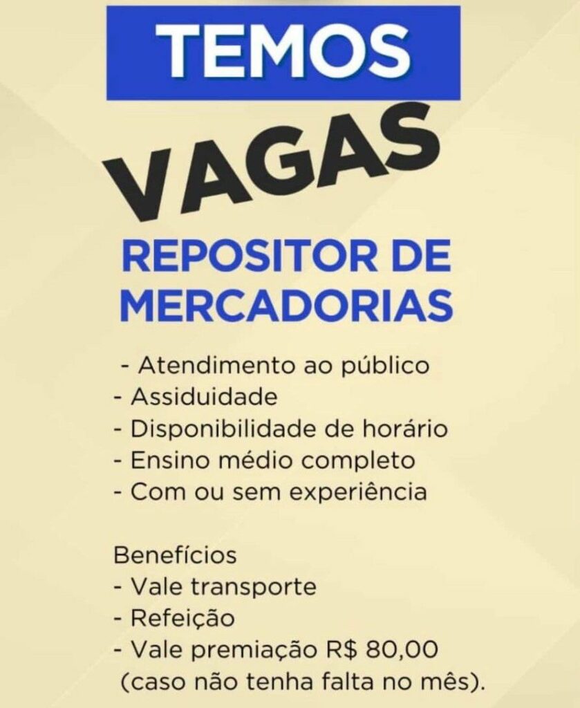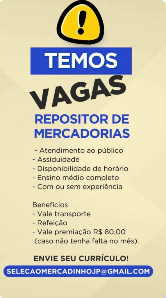 Seleção para vaga de Repositor de mercadorias; Envie seu currículo!