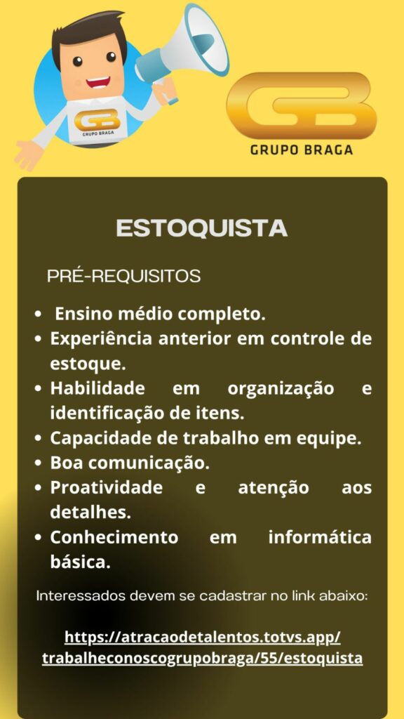 Empresa está selecionando Estoquista; Envie seu currículo!