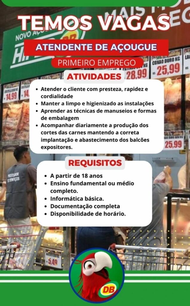 Hiper DB está selecionando Atendente de açougue; Envie seu currículo!