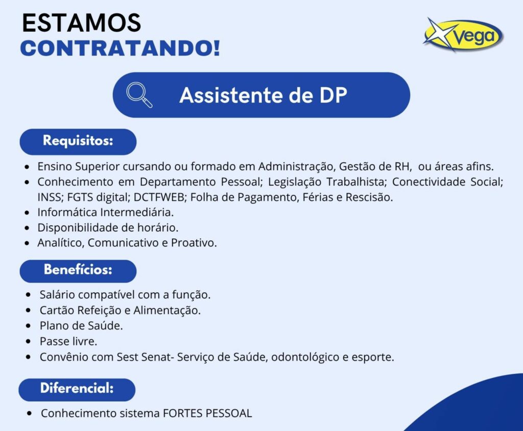 Vega Transportes seleciona Analista de dp; Envie seu currículo!