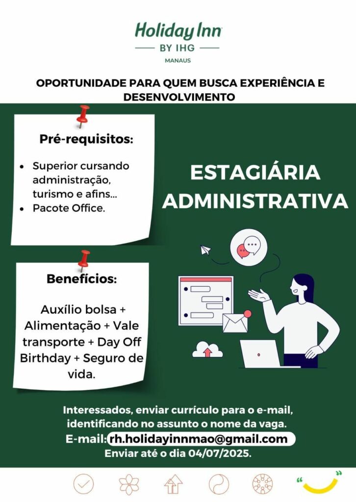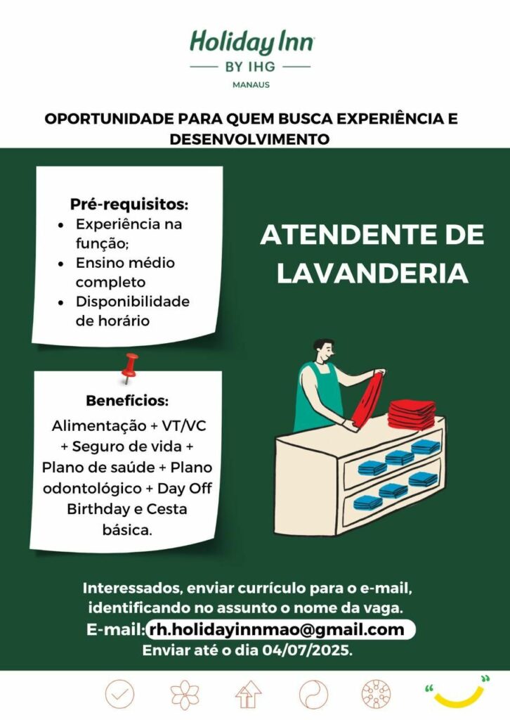 Holiday Inn Hotel seleciona Atendente de lavanderia, Estagiária administrativa; Envie seu currículo!