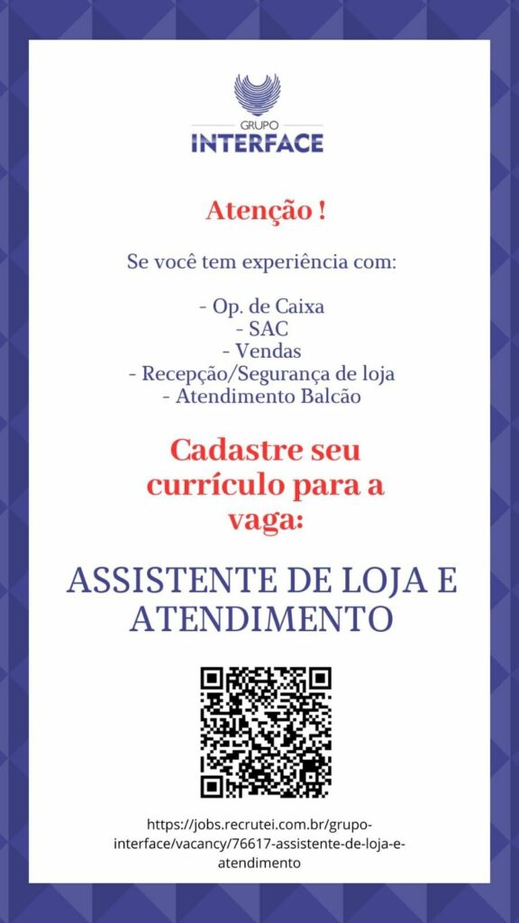 Rh está selecionando Assistente de loja e atendimento; Envie seu currículo!
