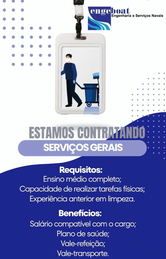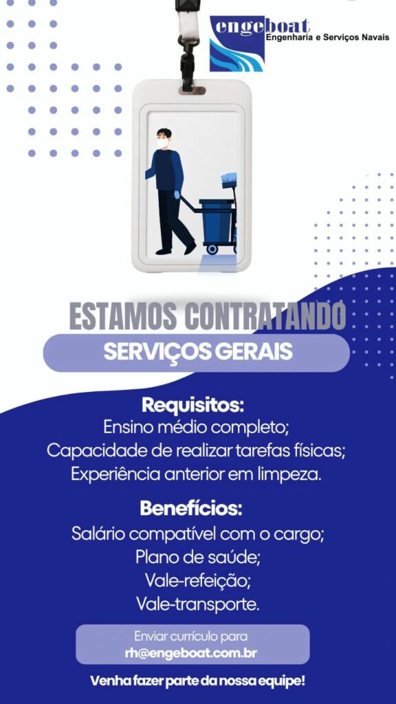 Empresa está selecionando Serviços Gerais; Envie seu currículo!