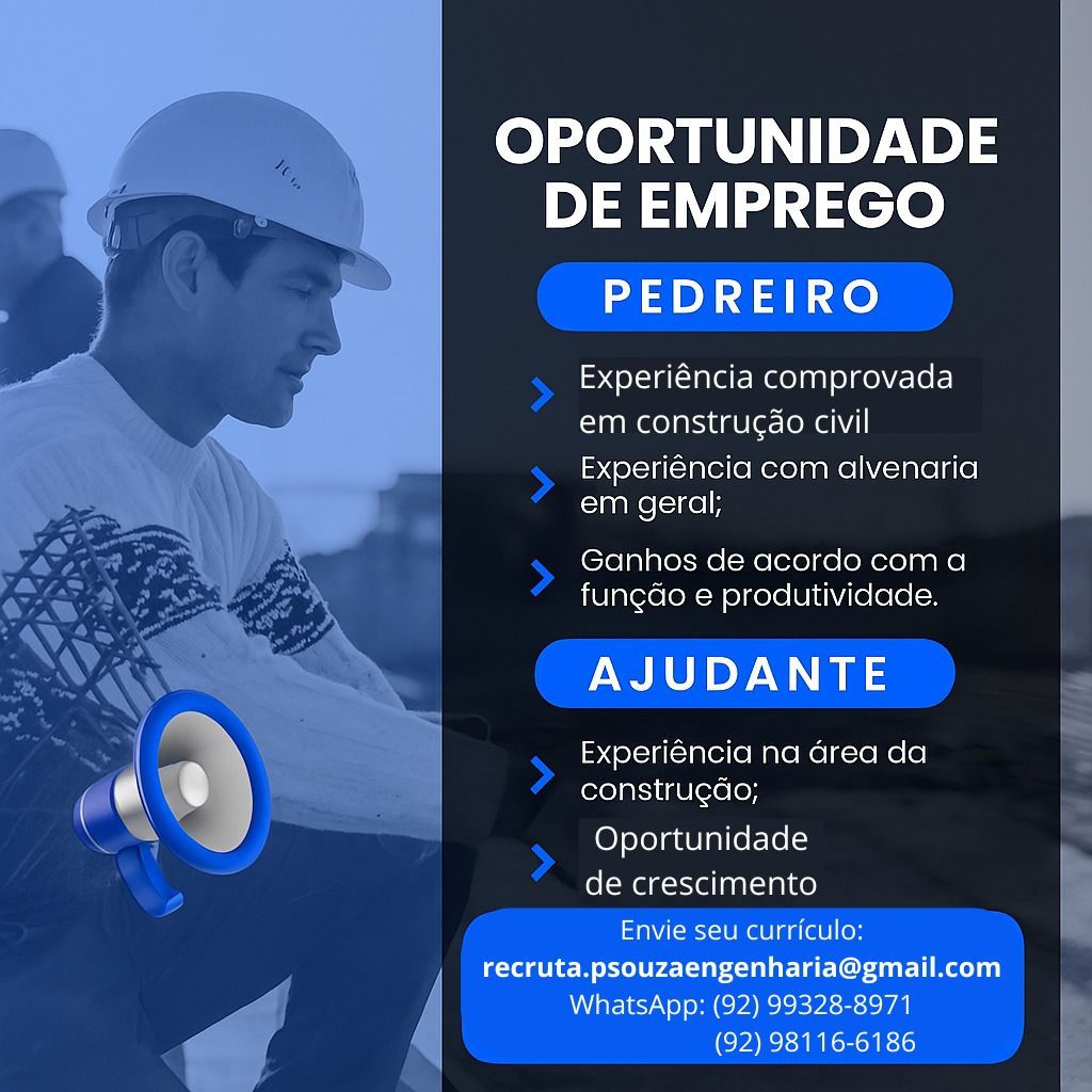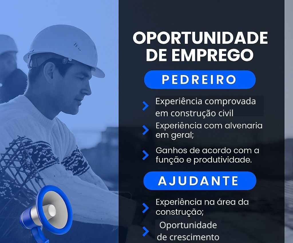 Empresa está selecionando Pedreiro, Ajudante; Envie seu currículo!