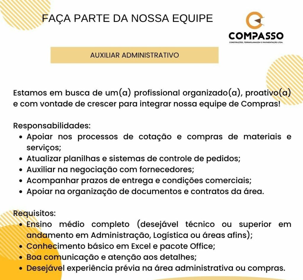 Grupo Rodrigues seleciona Auxiliar administrativo; Envie seu currículo!