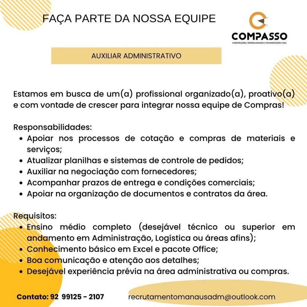 Empresa está selecionando Auxiliar administrativo; Envie seu currículo!