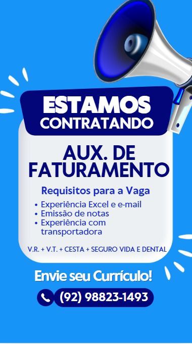 Empresa está selecionando Auxiliar de faturamento; Envie seu currículo!