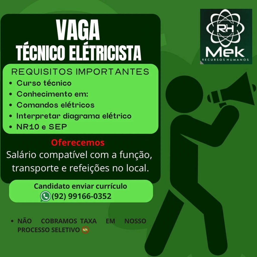 Empresa está selecionando Técnico Eletricista; Envie seu currículo!