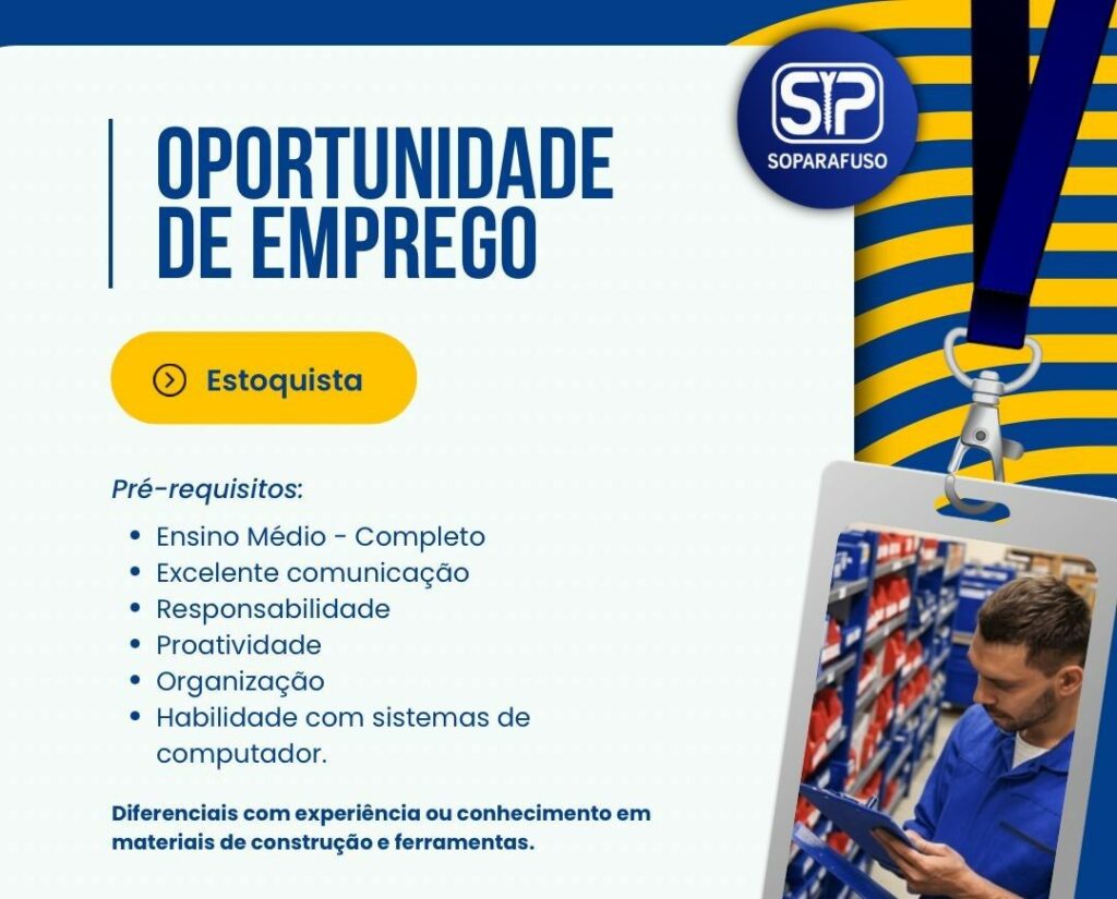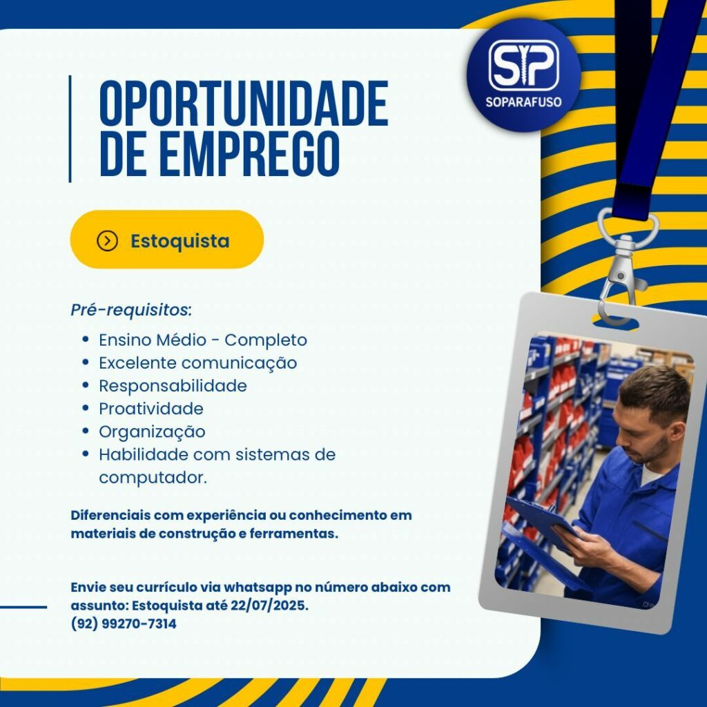 Empresa está selecionando Estoquista; Envie seu currículo!