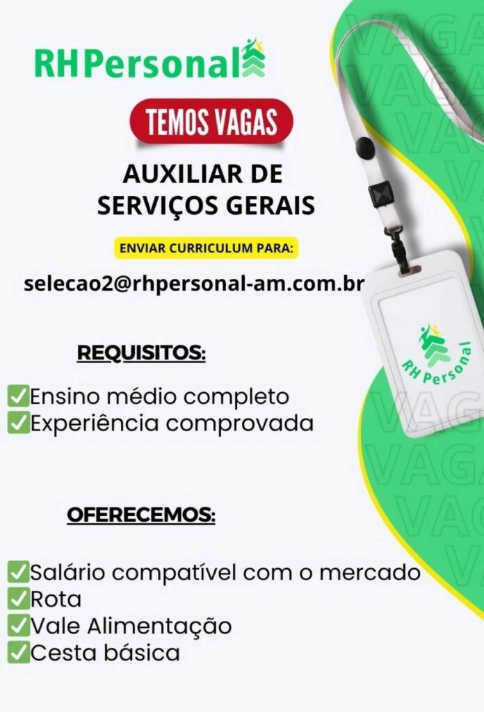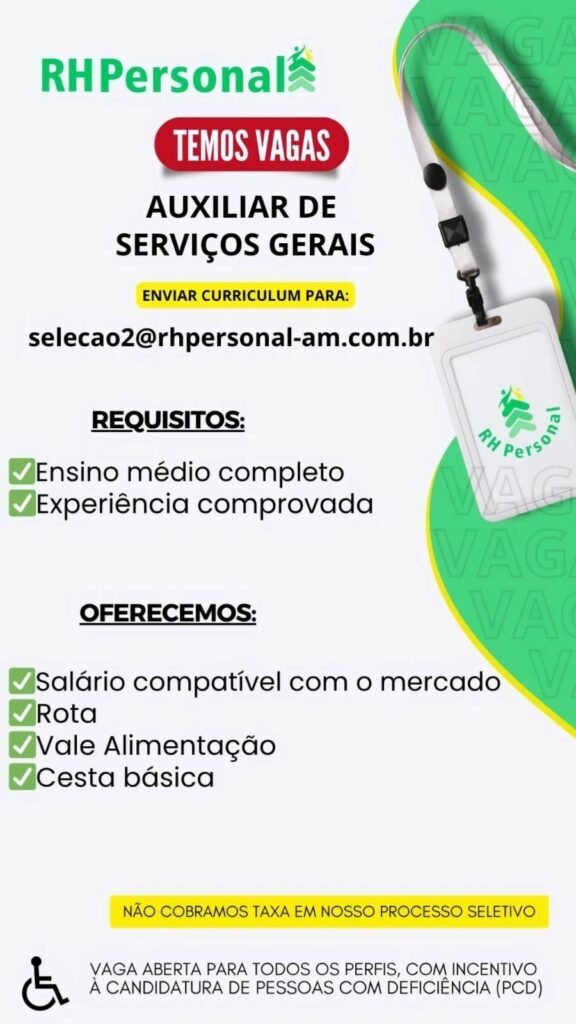 Rh está selecionando Auxiliar de serviços gerais; Envie seu currículo!