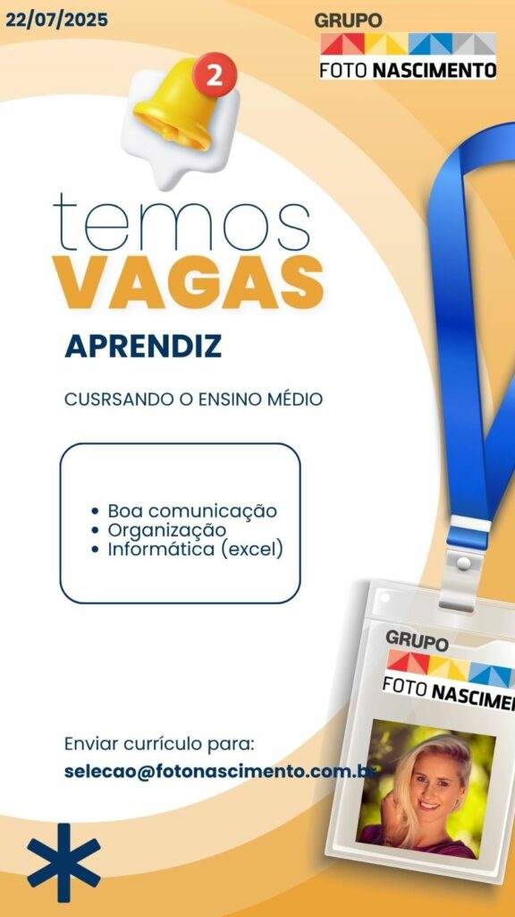 Foto Nascimento seleciona Aprendiz; Envie seu currículo!