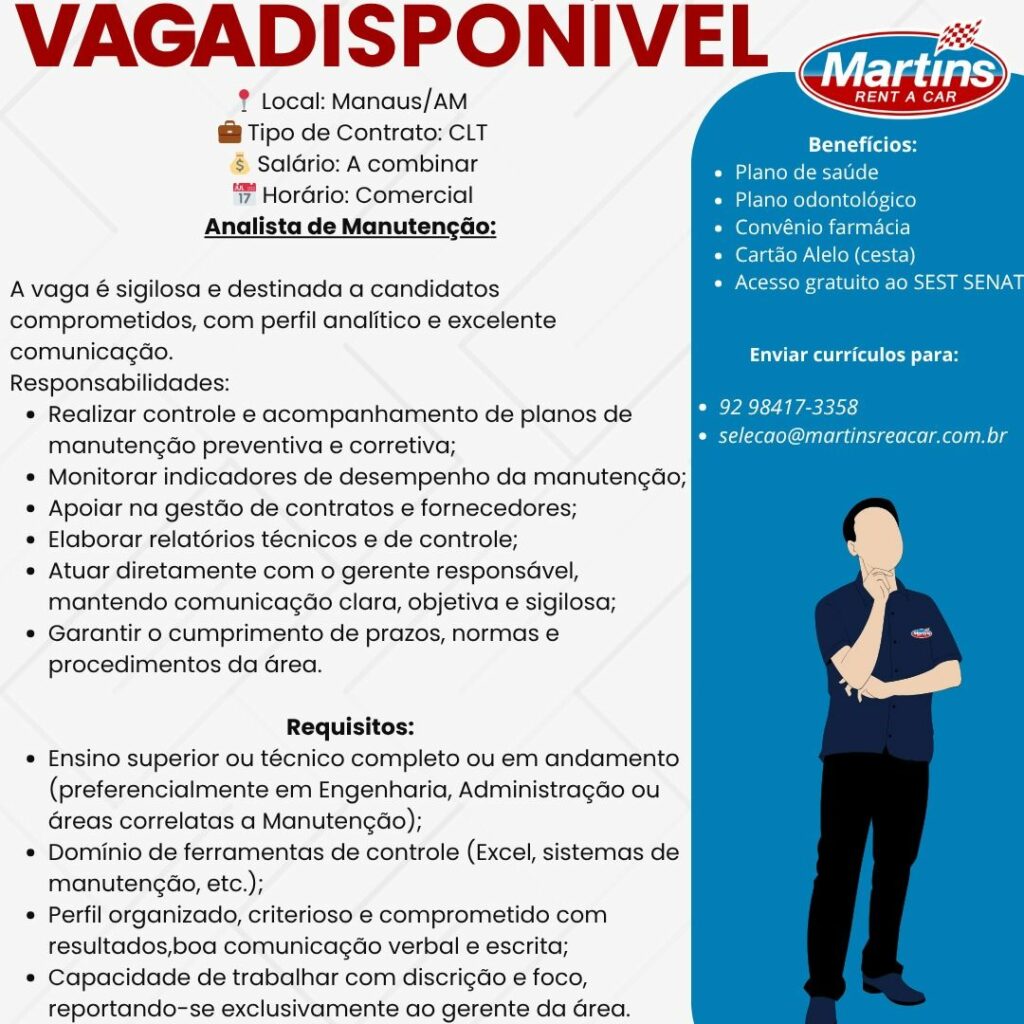 Martins rent a car seleciona Analista de Manuntenção; Envie seu currículo!