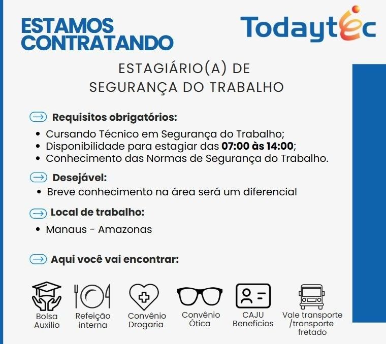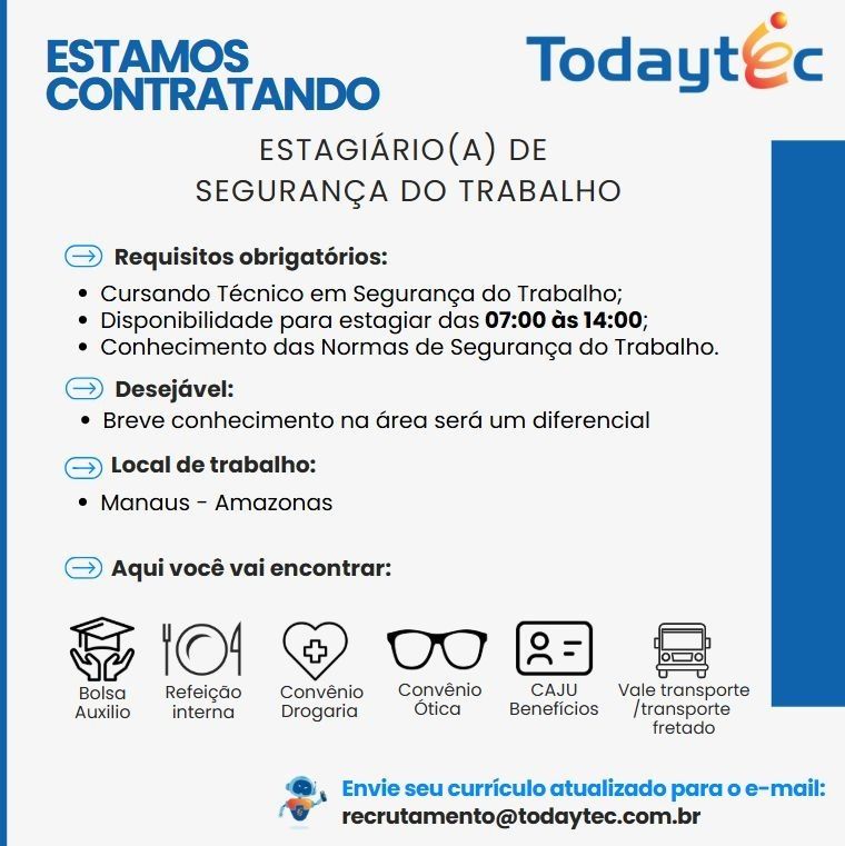 Empresa está selecionando Estagiário (a) de segurança do trabalho; Envie seu currículo!